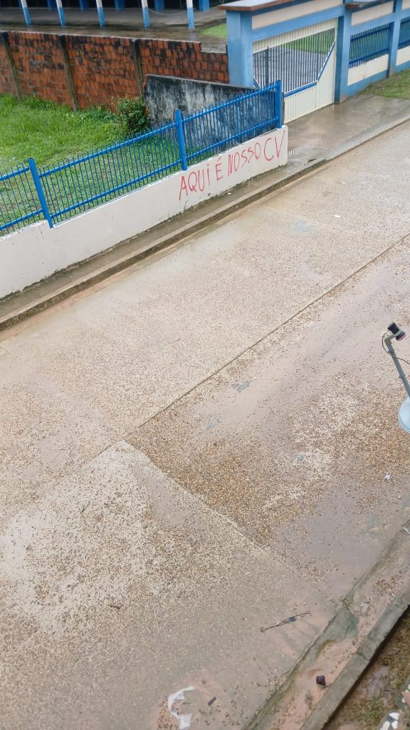 Imagens recebidas na manhã desta sexta-feira (17/04), mostram uma situação preocupante em Eirunepé. Muro da escola Conrado Pinto Gomes e de outras áreas da região da Vila foram pichados com siglas que fazem referência ao Comando Vermelho, como “CV” e outros símbolos.