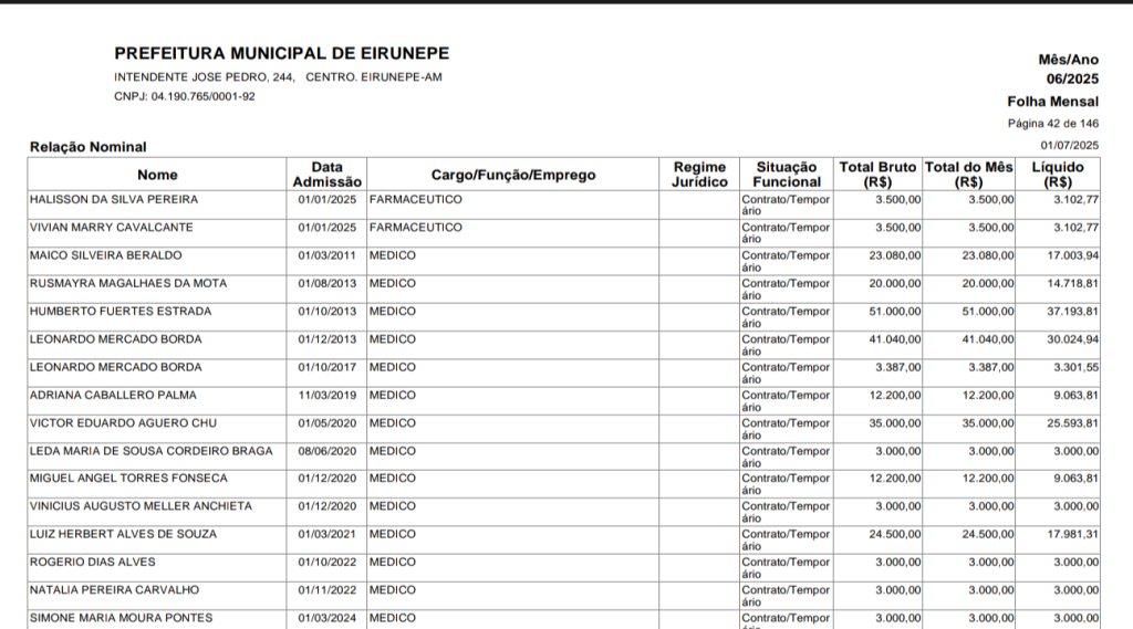 A equipe do Eirunepé Notícias fez questão de apurar a denúncia. Buscamos informações em unidades de saúde, hospital e postos do município. A pergunta foi simples: “Essa médica trabalha aqui?” A resposta foi um sonoro “não sabemos quem é”, reforçando a suspeita de que o salário estaria sendo pago sem a devida prestação de serviço à população.
