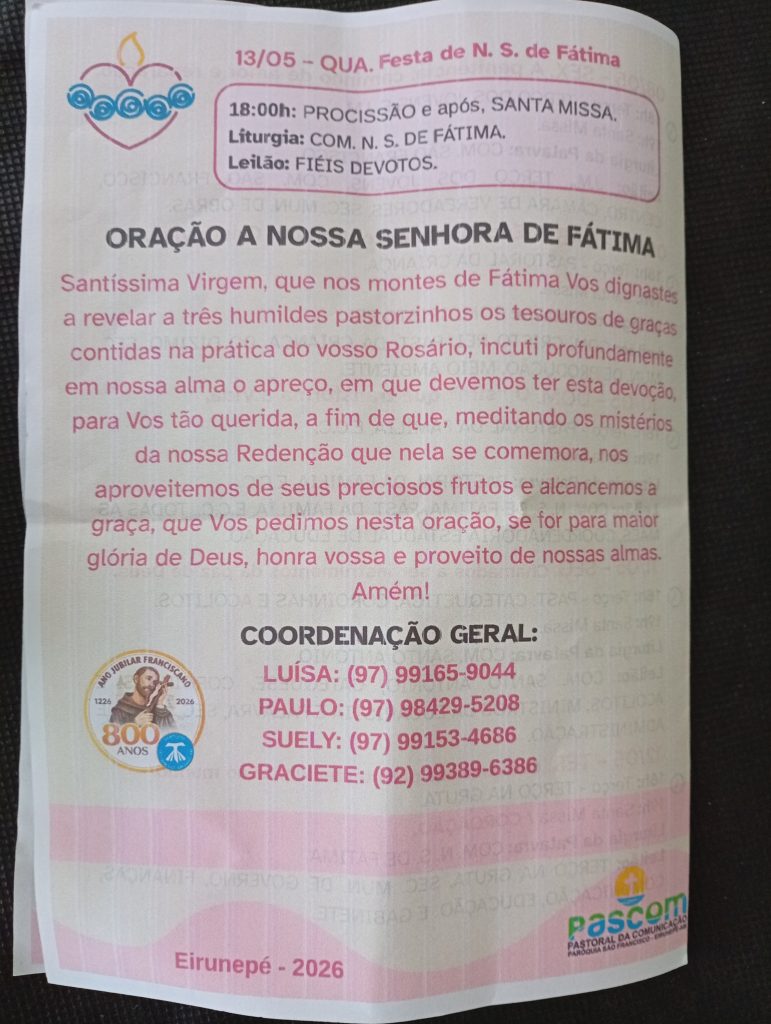 Mais do que um evento religioso, o Novenário de Nossa Senhora de Fátima representa um reencontro com valores espirituais, uma pausa na correria do dia a dia e uma oportunidade de renovação da fé para toda a comunidade de Eirunepé.