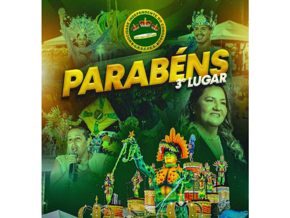 A Mocidade Independente do Coroado celebrou o terceiro lugar como fruto do trabalho coletivo e da força da comunidade, reforçando a tradição do Carnaval no município.