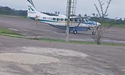 O avião de modelo EMB-720C, de prefixo PT-EOS, que transportava cargas de Feijó, no interior do Acre, para o município de Envira, no Amazonas, e que...