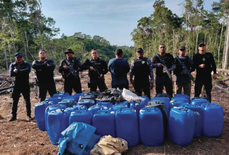 “Utilizamos recursos tecnológicos para sobrevoar a região com um drone e identificamos uma área de floresta de preservação permanente que havia sido desmatada recentemente, possivelmente para a instalação do ponto de pouso. Na sexta-feira, as equipes foram até o local e, na ocasião, encontraram diversos galões de combustível, o que confirmou que o espaço era utilizado para o reabastecimento irregular de aeronaves”, informou Micael Souza.