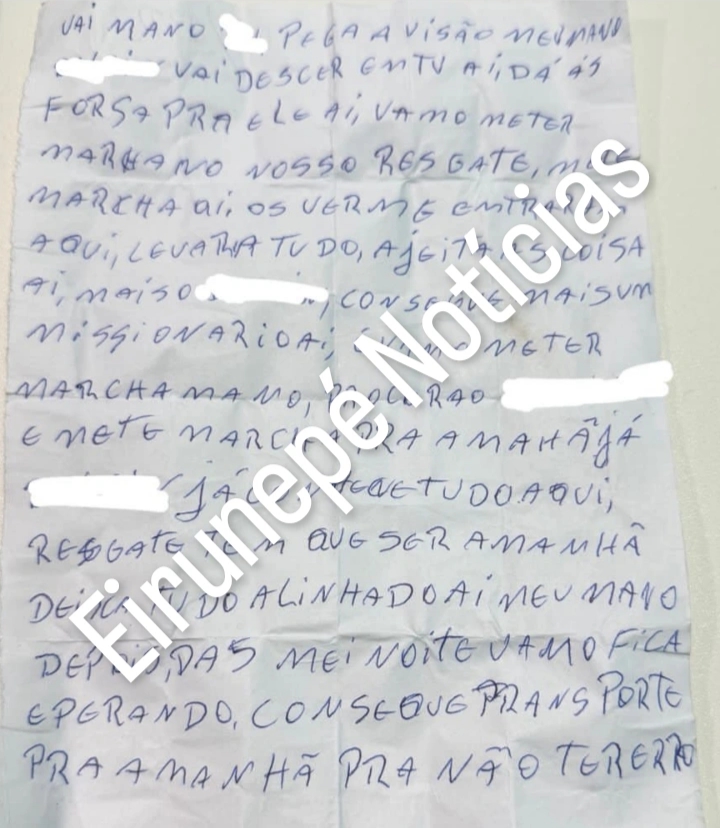 Durante as investigações, os policiais apreenderam uma carta escrita à mão, que teria sido usada para coordenar o plano de resgate. O conteúdo do bilhete revela uma linguagem típica de facções criminosas, com ordens diretas e códigos de comunicação entre os integrantes.