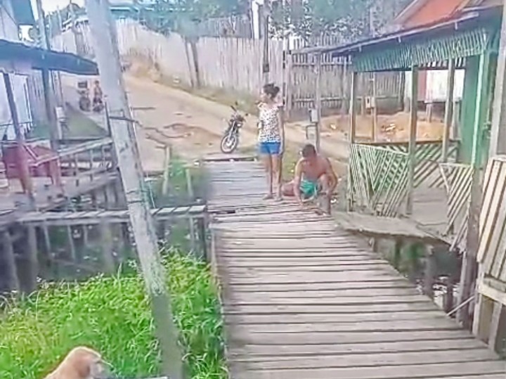 Ainda de acordo com essa versão, o senhor identificado como “Mael” teria retirado algumas tábuas da ponte por conta própria, o que dificultou o acesso de moradores e teria motivado o casal a agir para tentar restaurar a passagem.