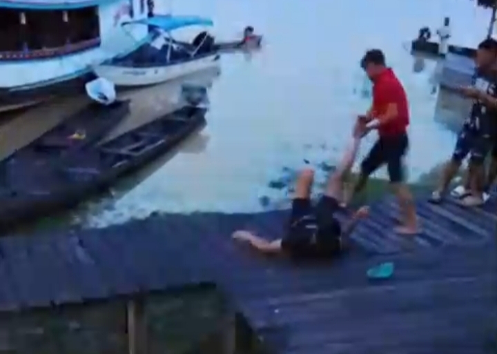 Um outro vídeo que circula nas redes sociais mostra mais uma cena de violência registrada durante o mesmo evento político realizado no último sábado (11/04) na comunidade, em Eirunepé.