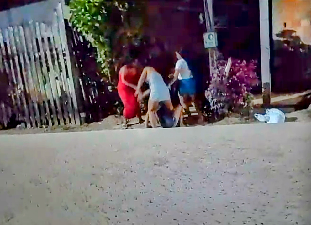 Um vídeo que circula nas redes sociais mostra o momento em que uma jovem é agredida por duas mulheres, sendo depois atacada por outras. Segundo informações, a confusão começou após uma discussão por causa de homem, e terminou em violência.